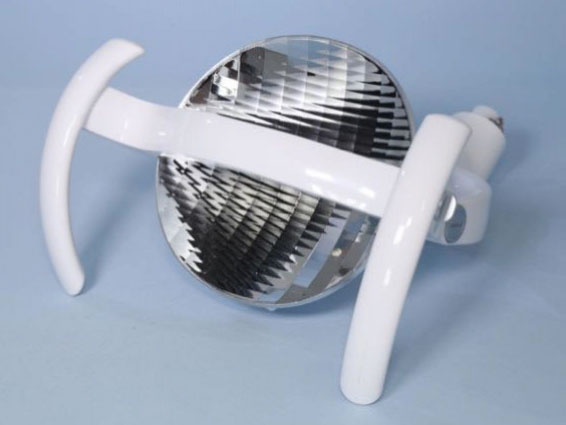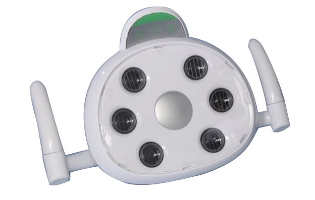 The top of the back cover on the dental operating light is equipped with a flat reflector, which can be deployed and closed to ensure that when the light illuminates the oral cavity, the patient can observe his oral cavity intuitively at a reasonable observation distance. Six groups of lenses are distributed on a circumference larger than 150 mm, which ensures the shadowless effect at the lighted sites.